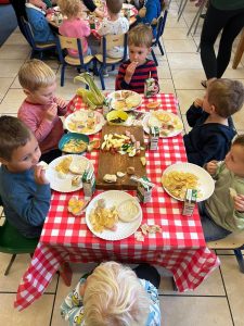 The children enjoyed a Harvest lunch today. They also enjoyed role play farms, digging and Autumn activities!