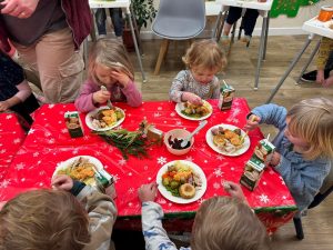 Today we had a lovely Christmas dinner with a special visitor from Father Christmas.